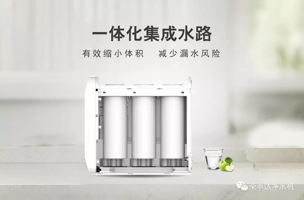 推陳出新的集成簡約式機身,相較于傳統(tǒng)的壁掛箱體或櫥下柱型可以說是一次完美的“瘦身”。385mm的迷你機身寬度要得益于內(nèi)部創(chuàng)新一體化集成水路設(shè)計,一體注塑成型,接頭數(shù)由23減少到9,水路化繁為簡,不僅成為了一個“小可愛”,而且性能更加穩(wěn)定,再加上無罐設(shè)計的錦上添花,榮事達400G智能反滲透凈水機算是真正實現(xiàn)了“時尚至簡”的視覺體驗和“靈活隨心”的安置效果。