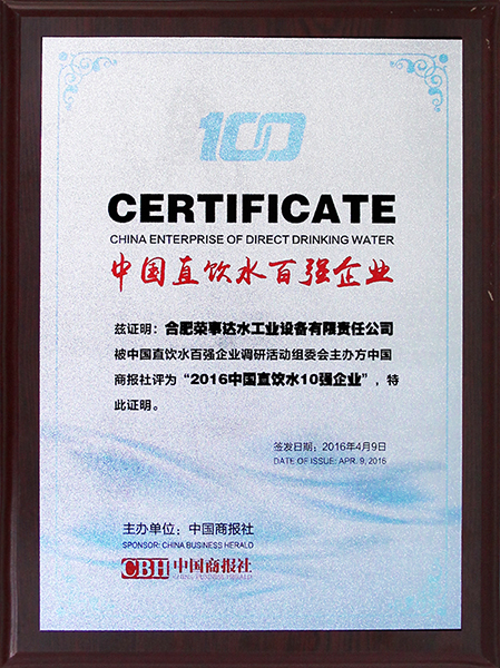 中國(guó)直飲水十強(qiáng)企業(yè) -
