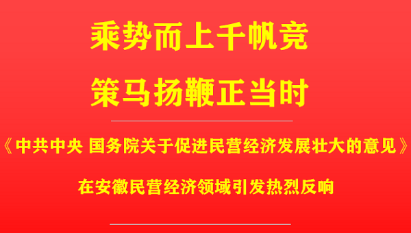 近日,《工商導(dǎo)報(bào)》報(bào)道了合肥榮事達(dá)水工業(yè)設(shè)備有限責(zé)任公司董事長(zhǎng)雷鳴關(guān)于《中共中央國(guó)務(wù)院關(guān)于促進(jìn)民營(yíng)經(jīng)濟(jì)發(fā)展壯大的意見(jiàn)》感悟。◎《工商導(dǎo)報(bào)》微...
